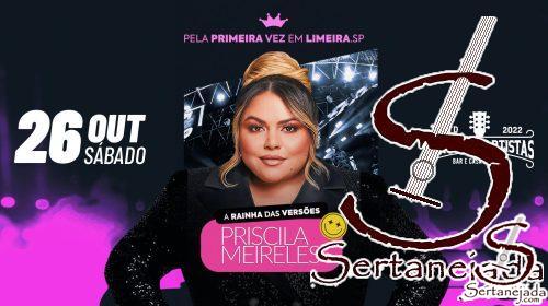 Ingressos: https://www.sympla.com.br/evento/priscila-meireles-a-rainha-das-versoes-em-limeira-sp/2654449